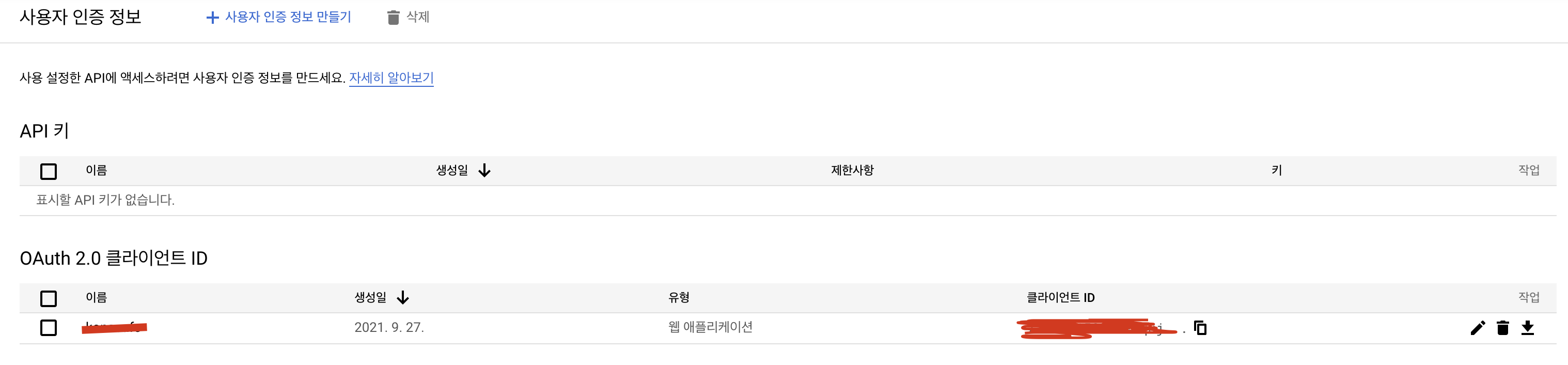 그럼 이렇게 OAuth 2.0 클라이언트 ID가 제대로 생성된 것을 확인할 수 있습니다!