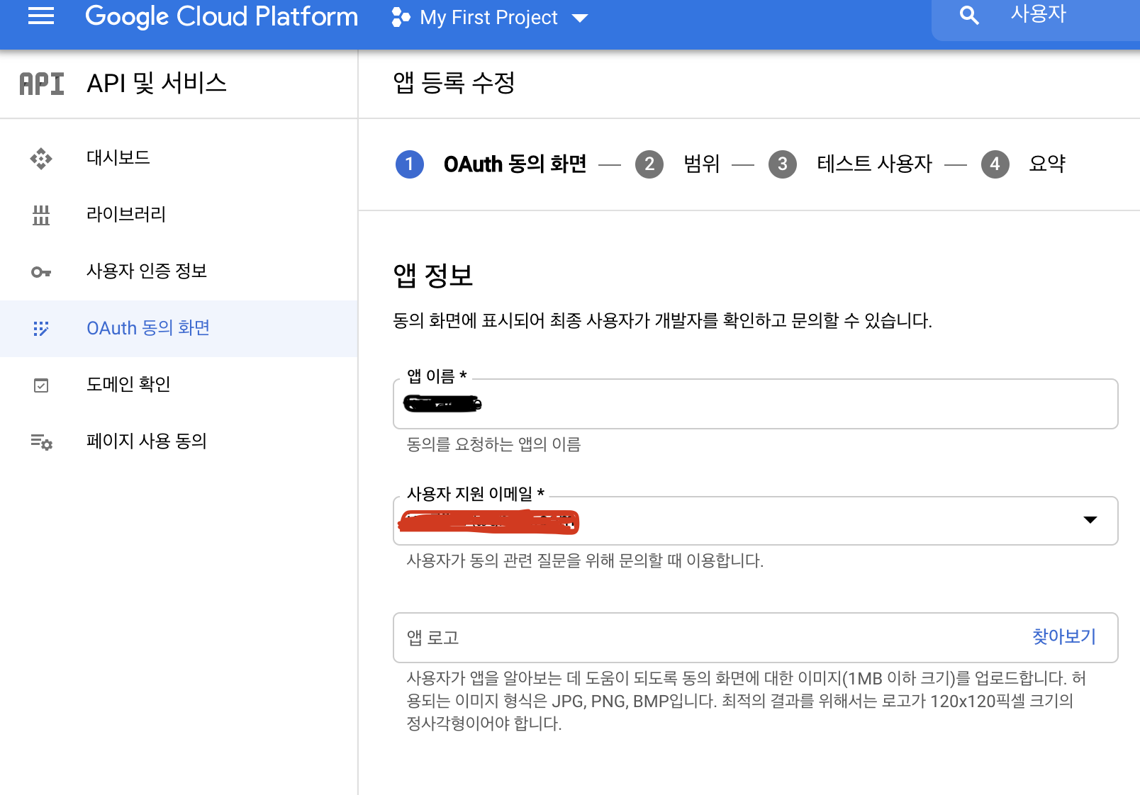 앱이름은 아무거나 지정해주어도 되며, 사용자지원 이메일은 현재 로그인된 구글 계정 이메일이 자동으로 뜨게 됩니다. 그걸 클릭해주시면됩니다.